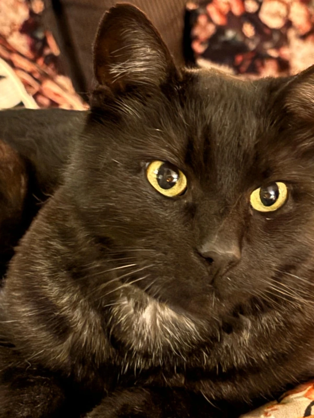 Het is een zwarte kater met een witte ondervacht. Zit waarschijnlijk verstopt in iemand zijn schuur!