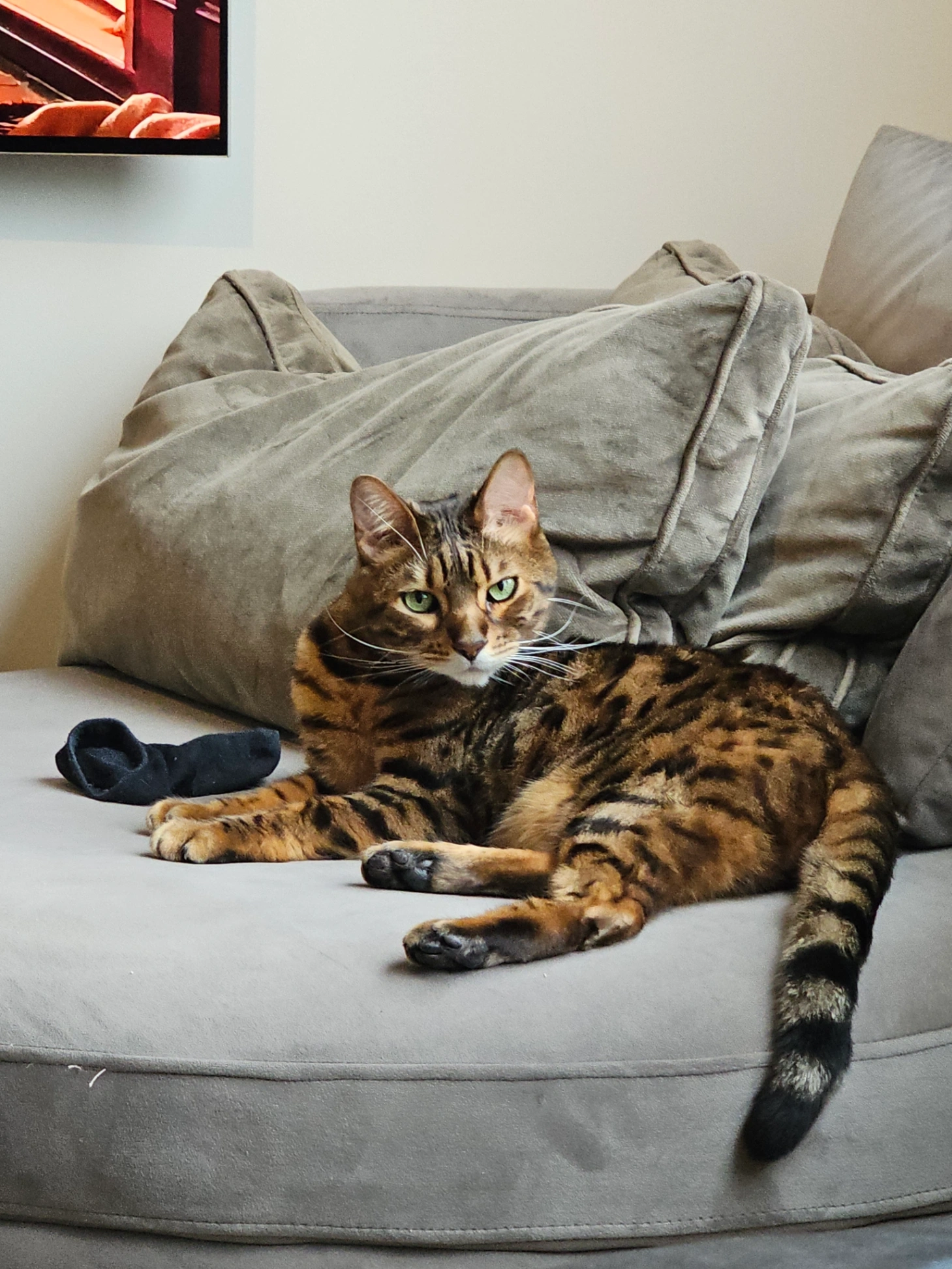 Kater, ongeveer 7 jaar oud. Groen gele ogen. Bruin van kleur, ras bengaal. Is een binnenkat. Heel nieuwsgierig en vriendelijk van karakter, echter wellicht schuw aangezien hij nu buiten is en dit niet gewend is.