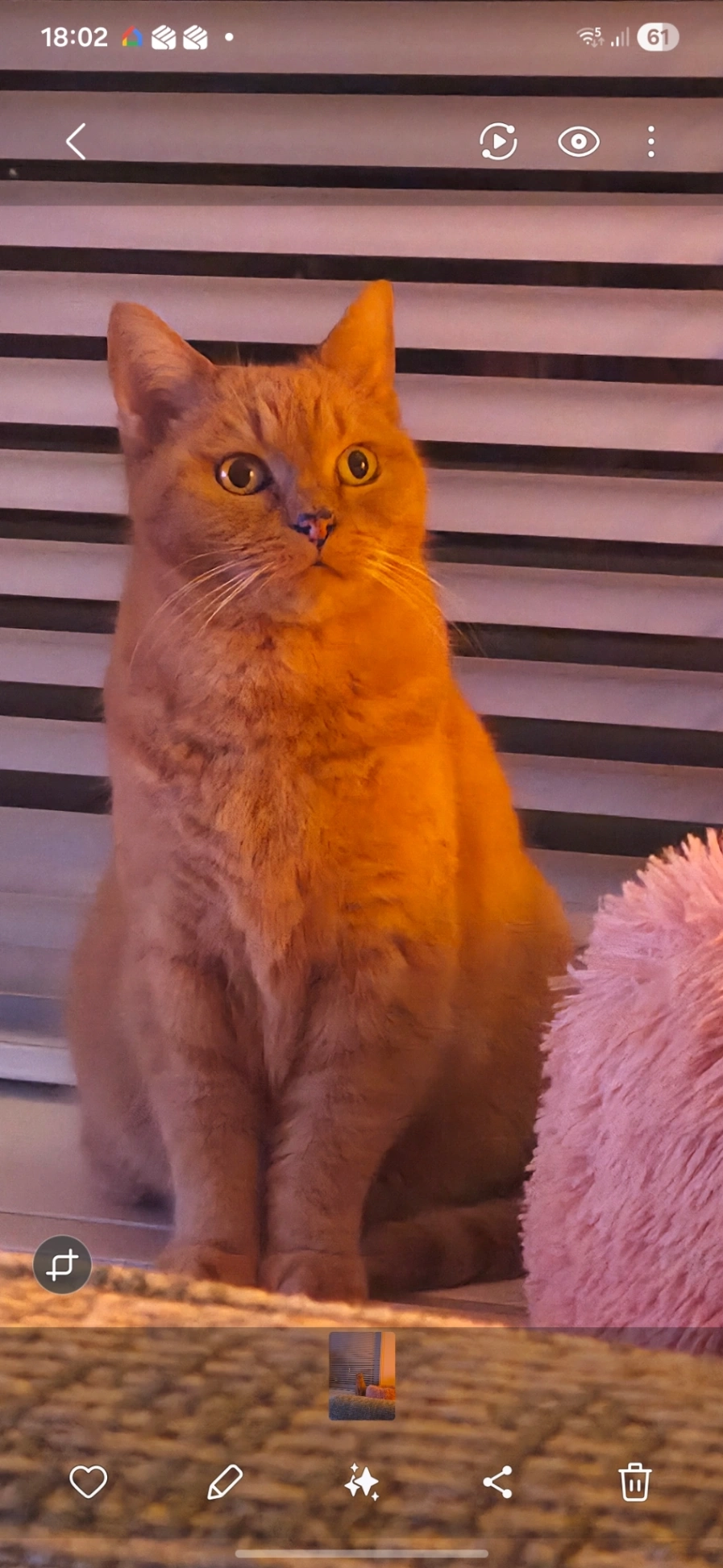 Olivier reageert op Ollie. Het is een grijze Britse langhaar, kan wat schichtig zijn en is gechipt