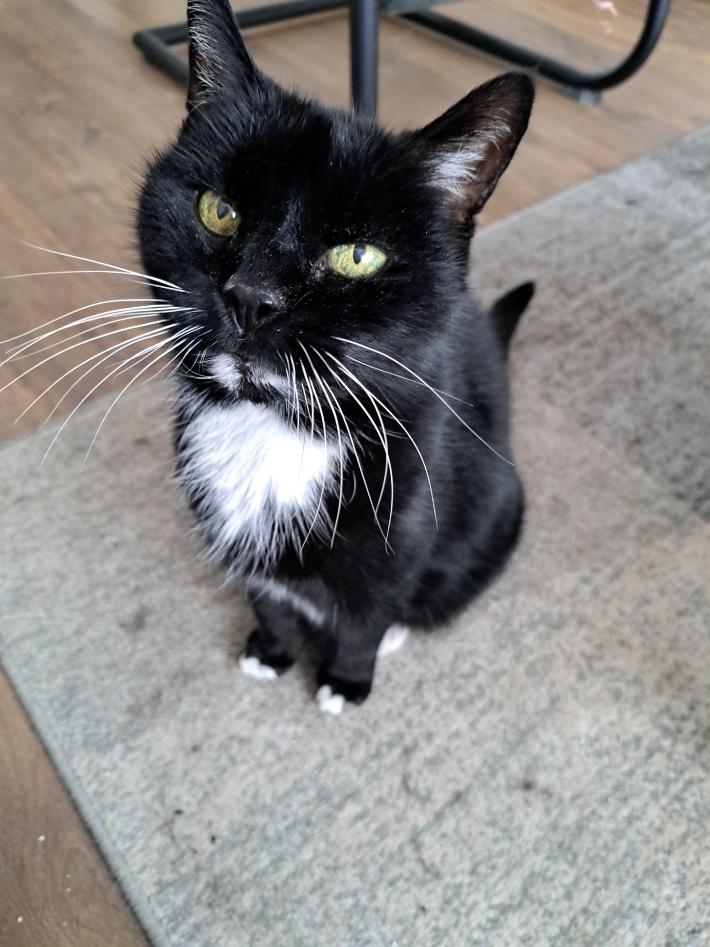 Ze is gesteriliseerd, niet gechipt en draagt geen halsbandje. Het is nu voorjaar en dan is ze vaak wat kaal van achteren en magerder
