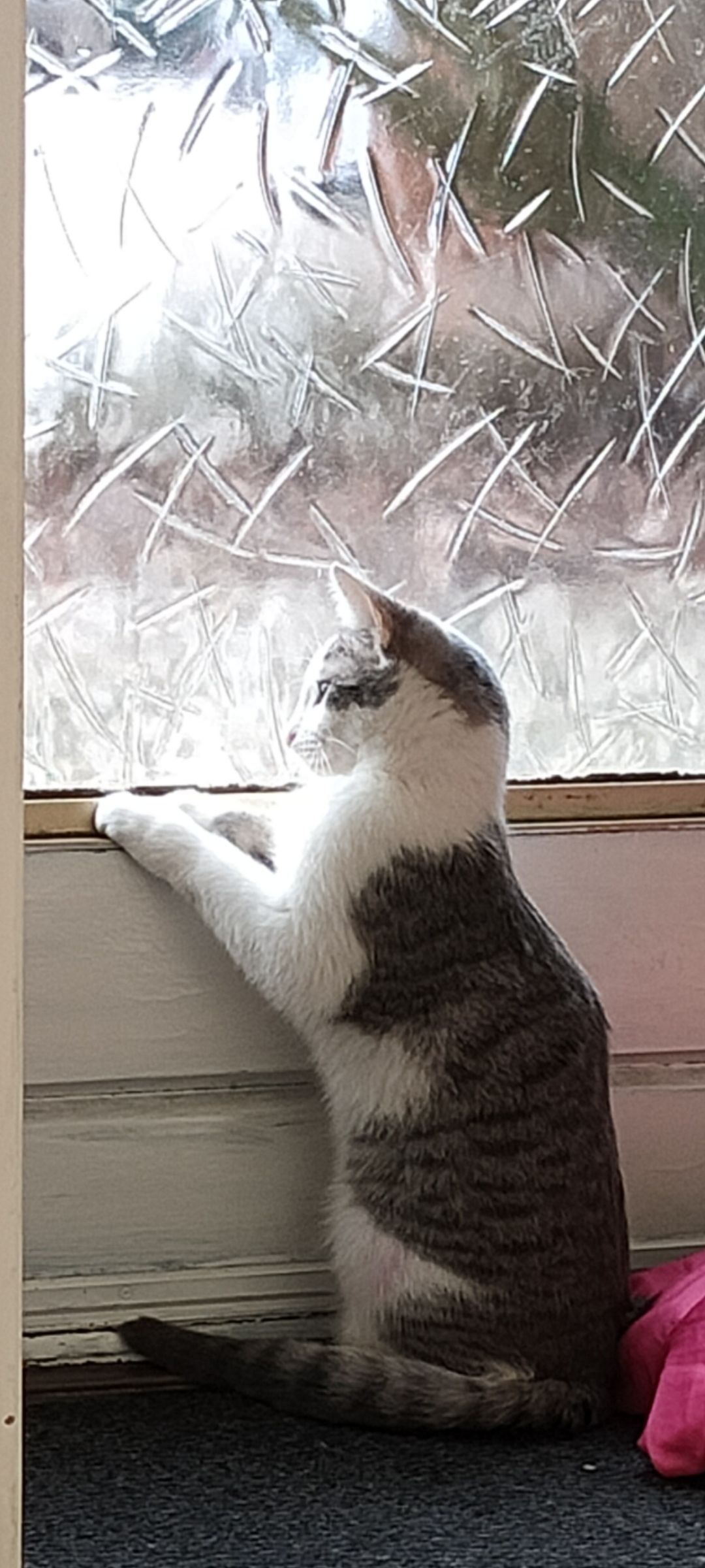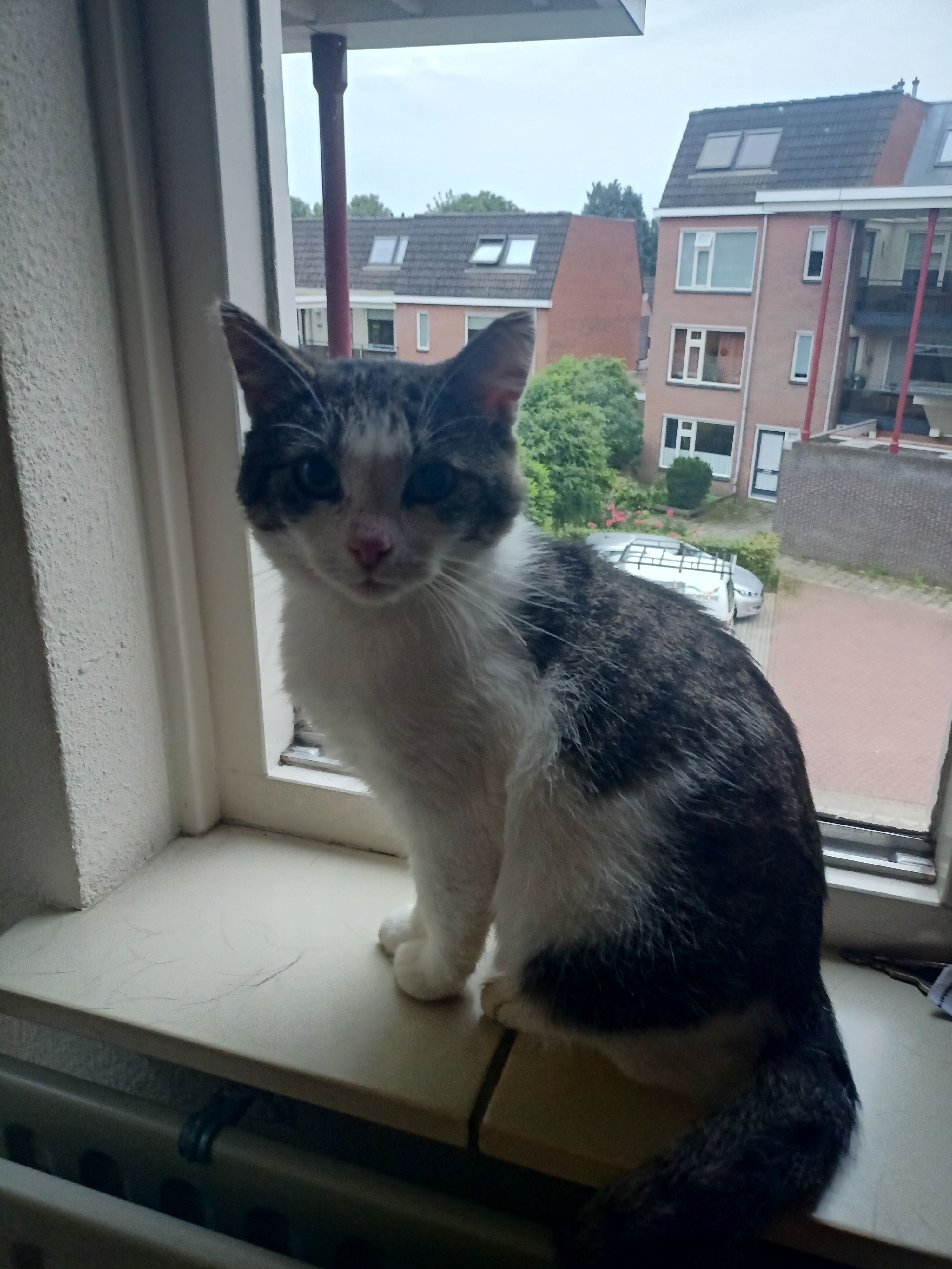 Dit is muis. Wit met muisgrijs ☺️Houd haar zoveel mogelijk binnen. Maar ze is nogal snel bij de kinderen als die na binnen gaan. 😮💨