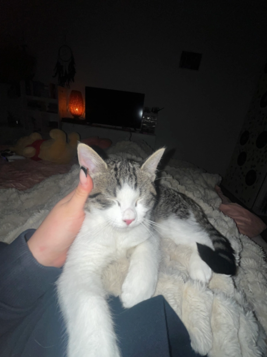 Cookie is normaal een binnenkat die nooit buitenkomt. Hij is wat banger aangelegd dus kan echt verstopt zitten ergens