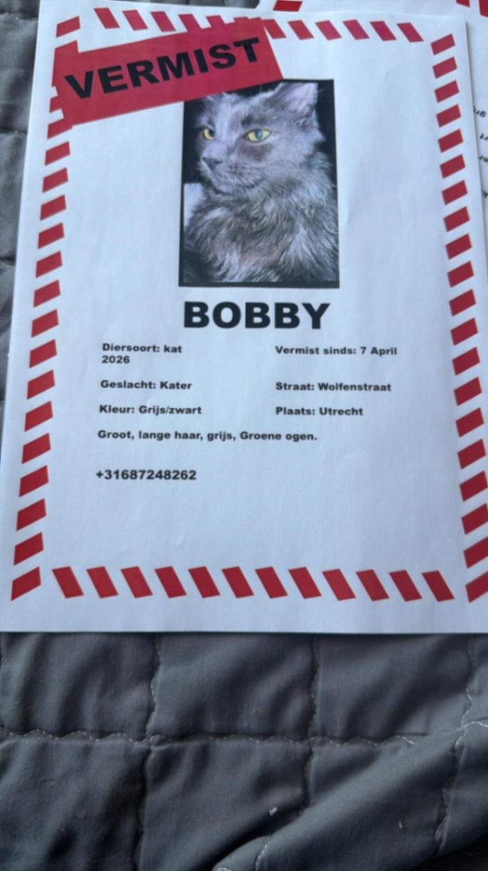 Heb je Cesur misschien gezien? We zijn erg bezorgd. Zou je alsjeblieft in je garage, schuur, zolder, tuin en op je terras willen kijken?