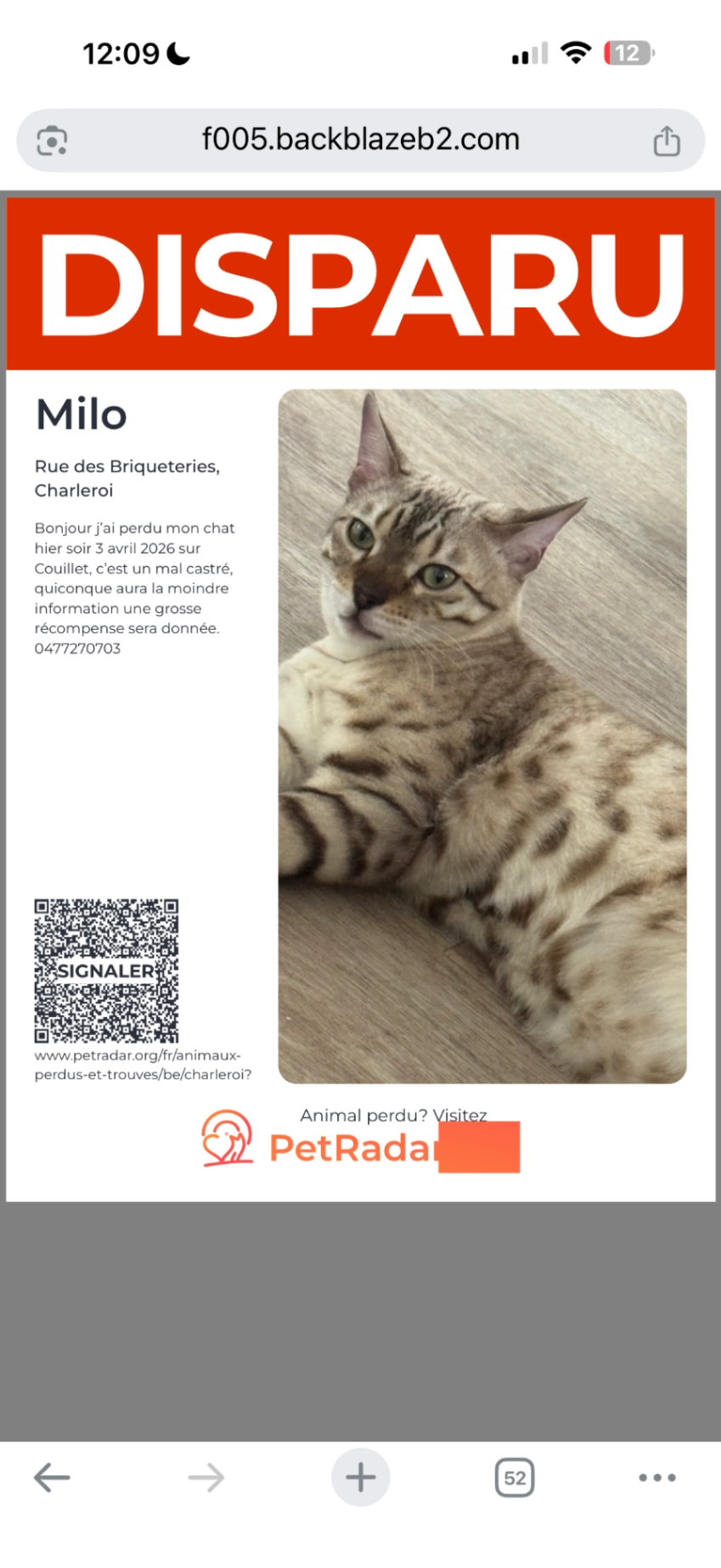 Toute information, même minime, pourra nous aider à ramener Milo à la maison !