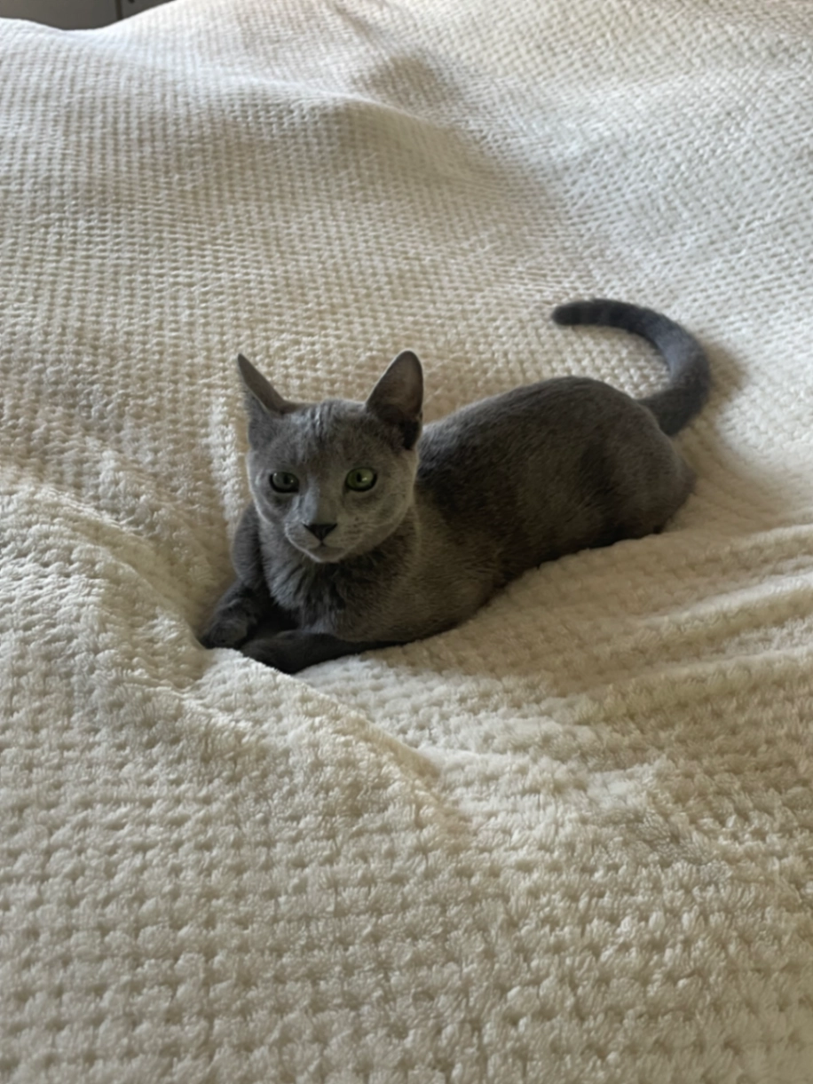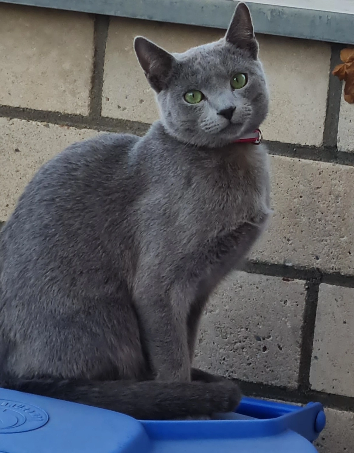 Er ist Kastriert und gechipt. Er ist ein russisch Blau Kater und 11 Monate alt. Er ist sehr neugierig und lieb