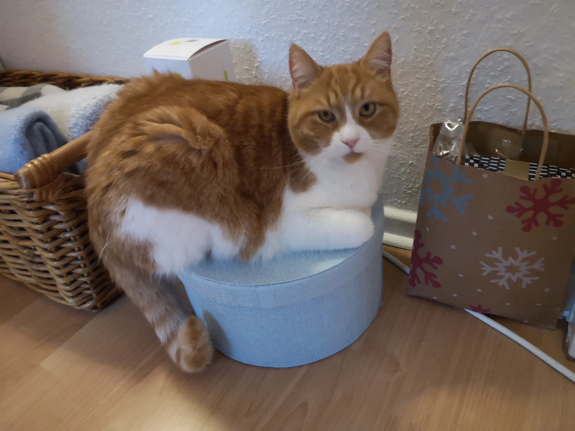Dexter ist 8 Jahre, eine Britische Kurzhaar Katze, weiß/rot und ziemlich scheu.