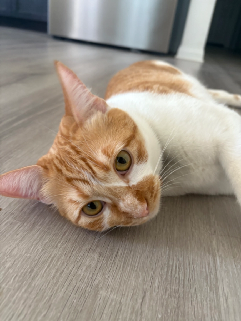 Orange white tabby with striped patterns 1 yr old and female