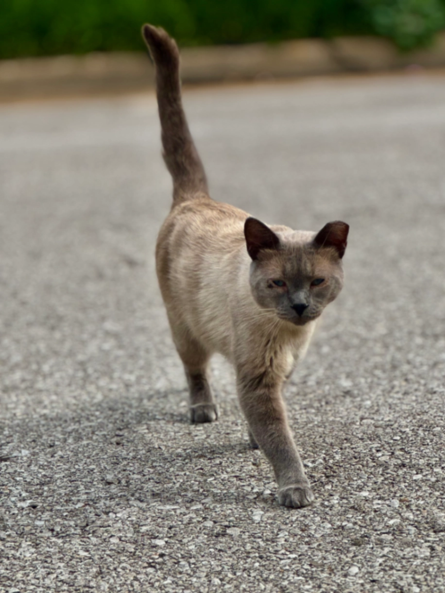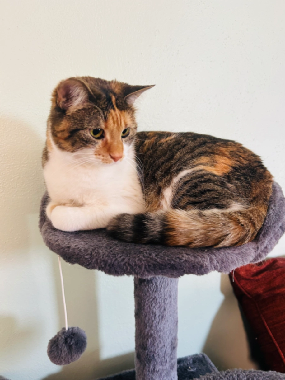 Mostly gray tortie with a tough little personality.