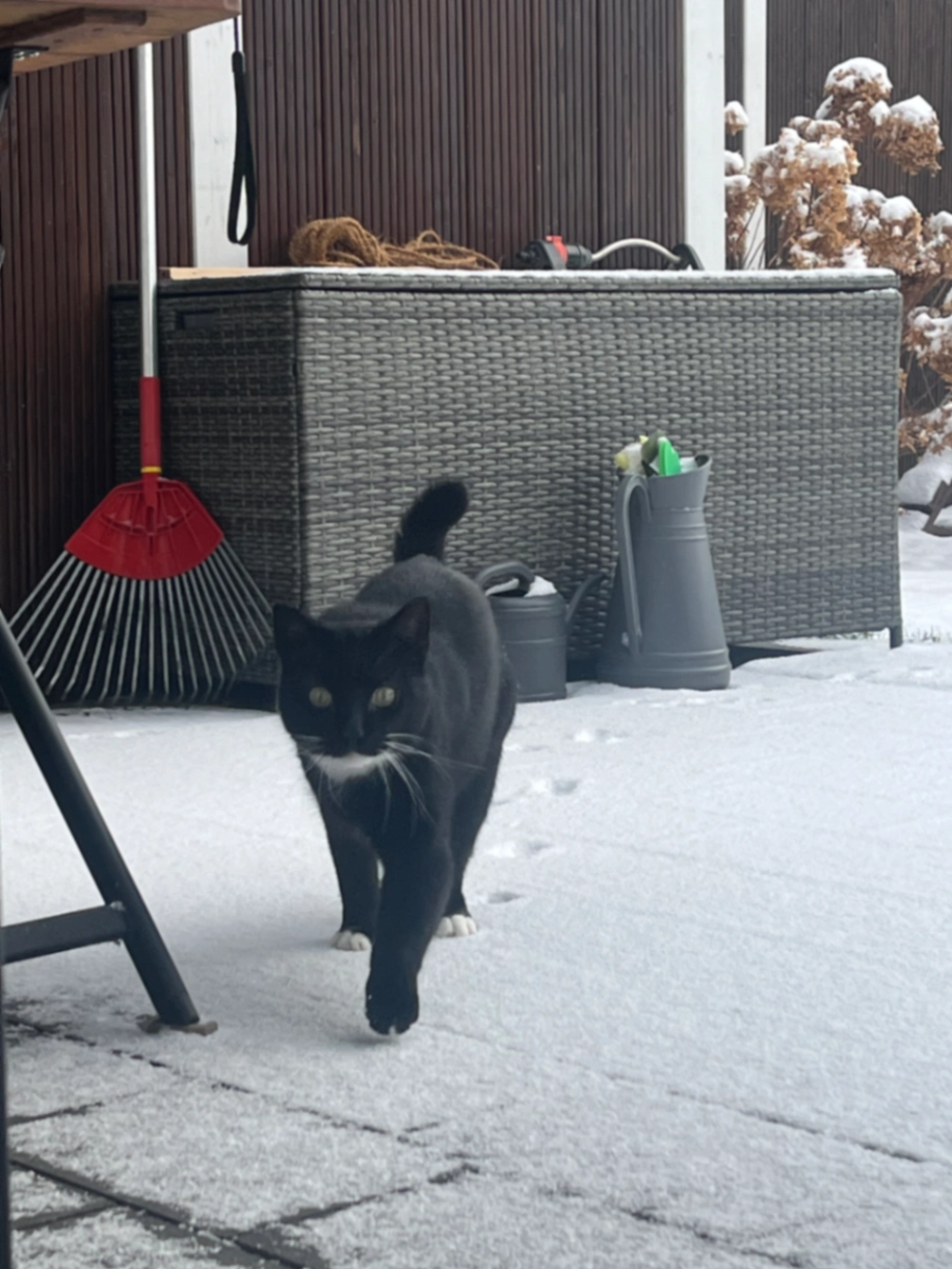Schwarz-weiße Katze, sterilisiert, schlecht sichtbares Tattoo im Ohr. Fremden gegenüber wenig zutraulich, reagiert auf den Namen.