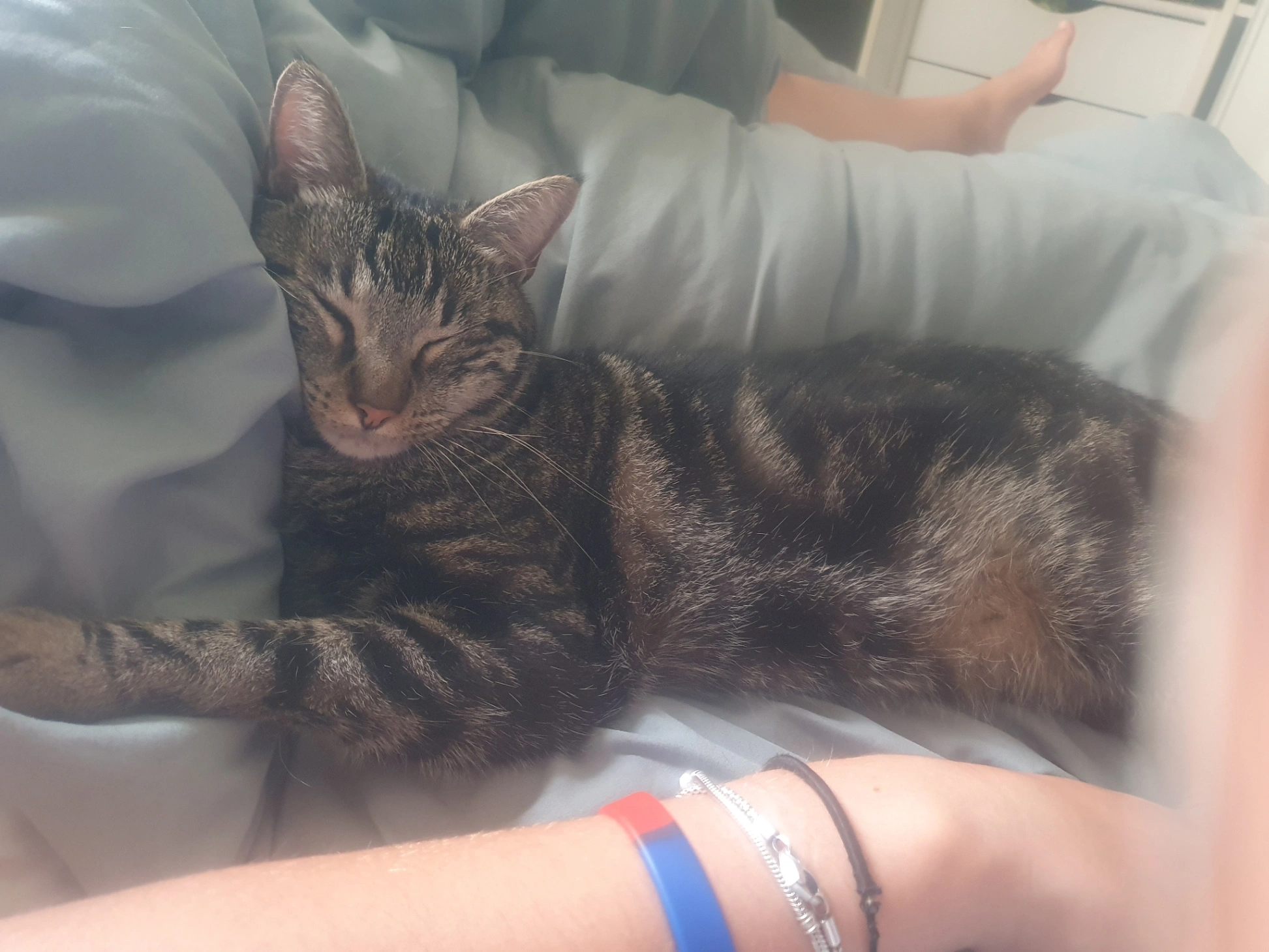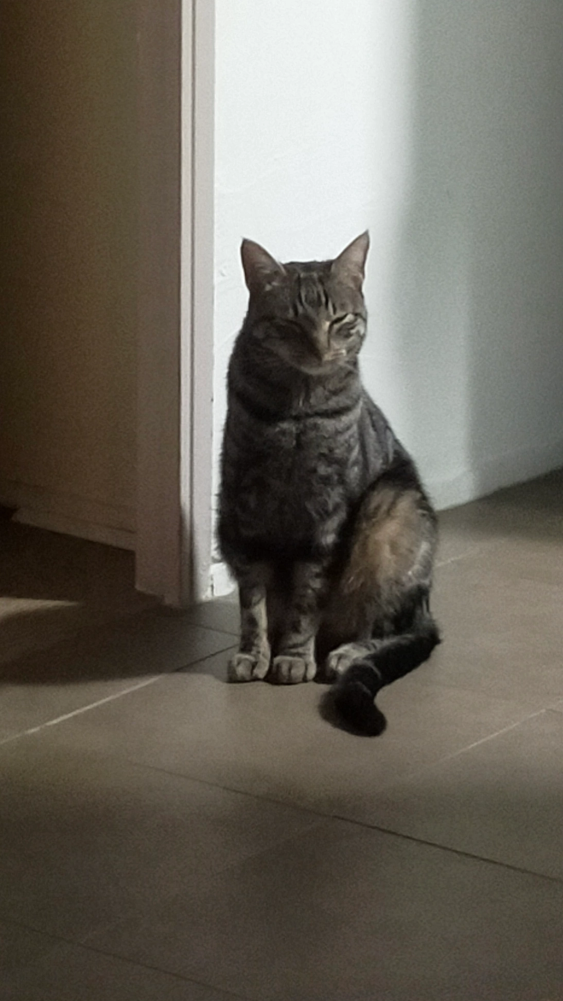 Petit chaton de 5 mois, femelle, noire et petit gabarit, peureuse mais très mignonne