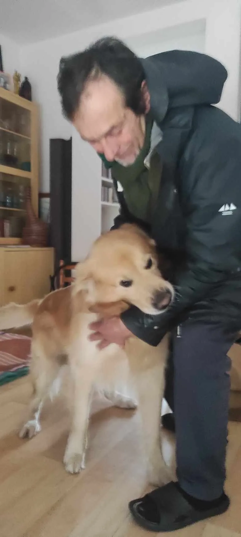 Adorable golden retriever de 9 ans sans collier ni laisse de couleur beige
