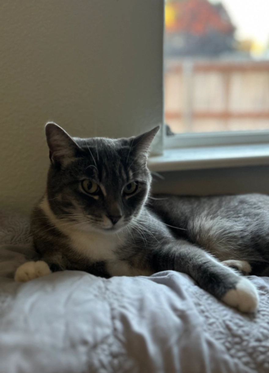 Luffy is a large adult male, yellow/green eyes and has a tuft of white on his chest. He is very friendly and chatty, doesn't scratch or bite and has more of an average to slender/muscular build.