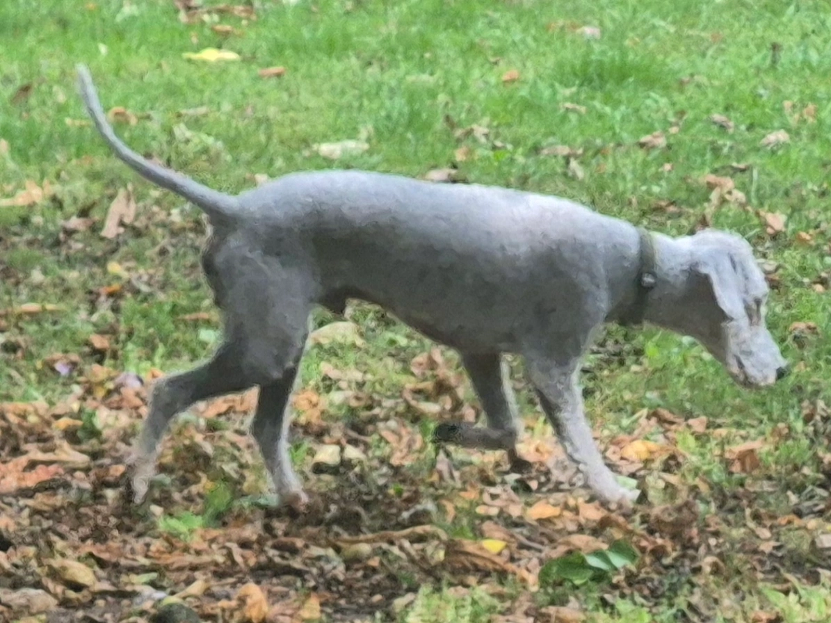 4 year old Blue Bedlington terrier with a green collar