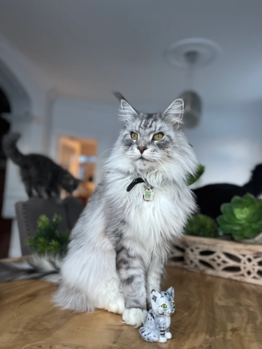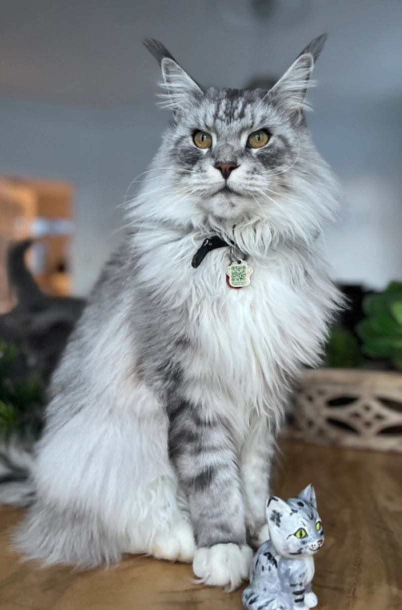 Sultan est un chat grand et tres gentil avec des poils gris claire et blanc tigre perdu le 7 avril 438 366 9804/ 450 628 1592