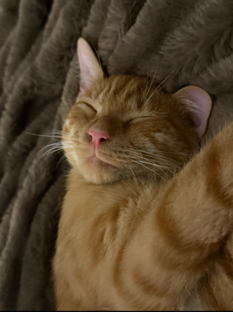 Es naranja. Tiene ojos verdes, es macho, no está castrado y es amigable.