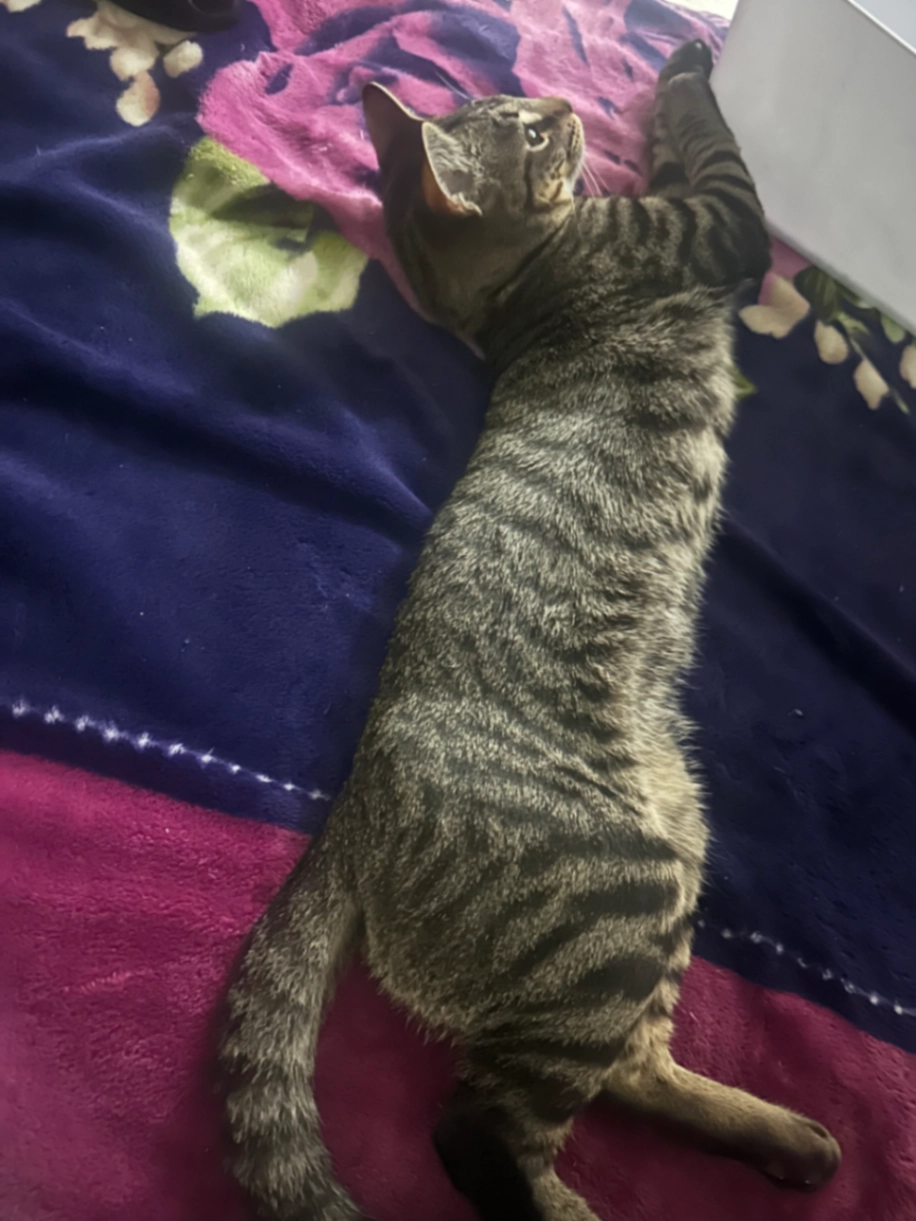 Very Timid and shy. runs away from strangers. TNR her 4 years ago. She was feral but has lived indoors with our other fur babies and she’s very happy. She will be will scared and frightened.