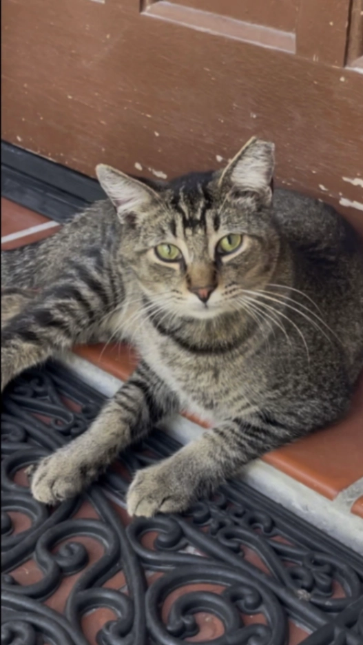 She is very skinny and short for a cat her age, female Tabby she’s very friendly but is probably scared right now she doesn’t go outside ever
