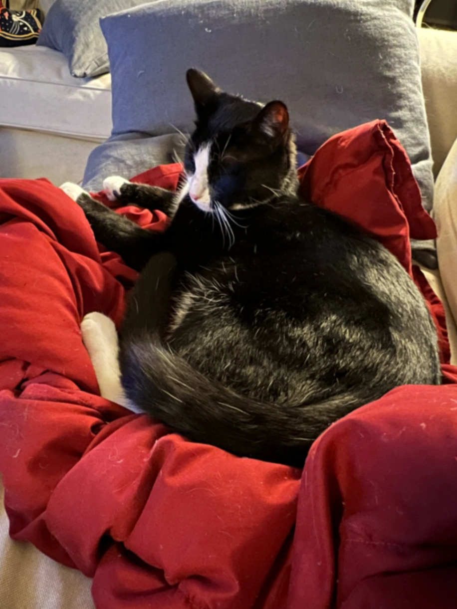 Black and white tuxedo male.