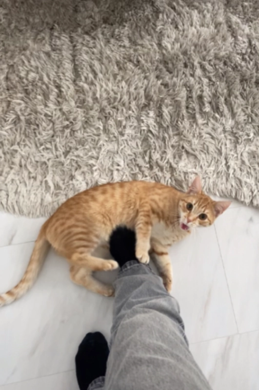 Hij heet Simba hij loopt beetje mank of niet helemaal normaal is een keer aangereden