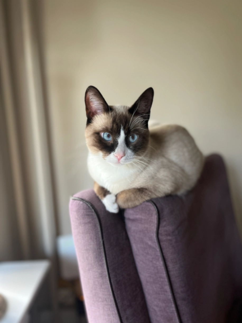 Zij lijkt een beetje op “Zorro” met een donker gezicht. Zij heeft korthaar en is Siamese kruising met ragdoll. Zij heeft donker bruin benen en ligt poten. Zij is heel gezond . Zij is iets ouder dan een jaar.