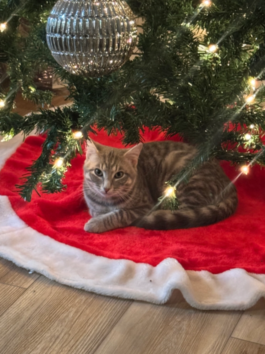 He is a Silver cat with black spots. My dogs snuck in the house and left the back door open early this morning